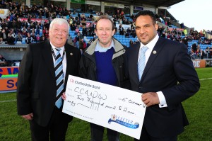 On Saturday 6th October, the Exeter Foundation was thrilled to welcome Clive Adams, Director of CCANW, to the Exeter Chief Rugby Club at Sandy Park to receive a cheque for £2000 during the half-time proceedings of the day’s game. This was presented by the foundation’s Chairman Tony Rowe OBE and trustee Michael Caines MBE.
